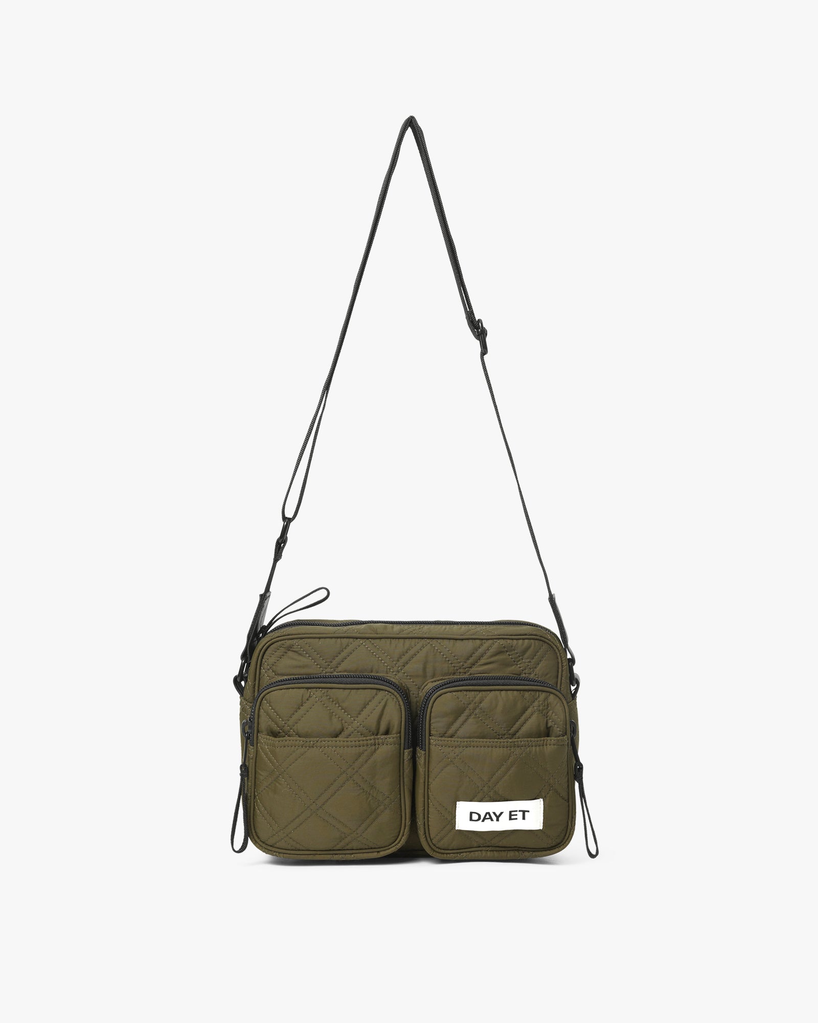 En romslig veske med mange oppbevaringsmuligheter og vattert design. Den har to utvendige rom med glidelås, en åpen innerlomme og en lomme med glidelås. Den kan brukes som skulderveske eller crossbody. Stroppen er justerbar og har fine detaljer i kunstskinn. Ytterstoffet og innerforet er laget av 100 % sertifisert resirkulert materiale.