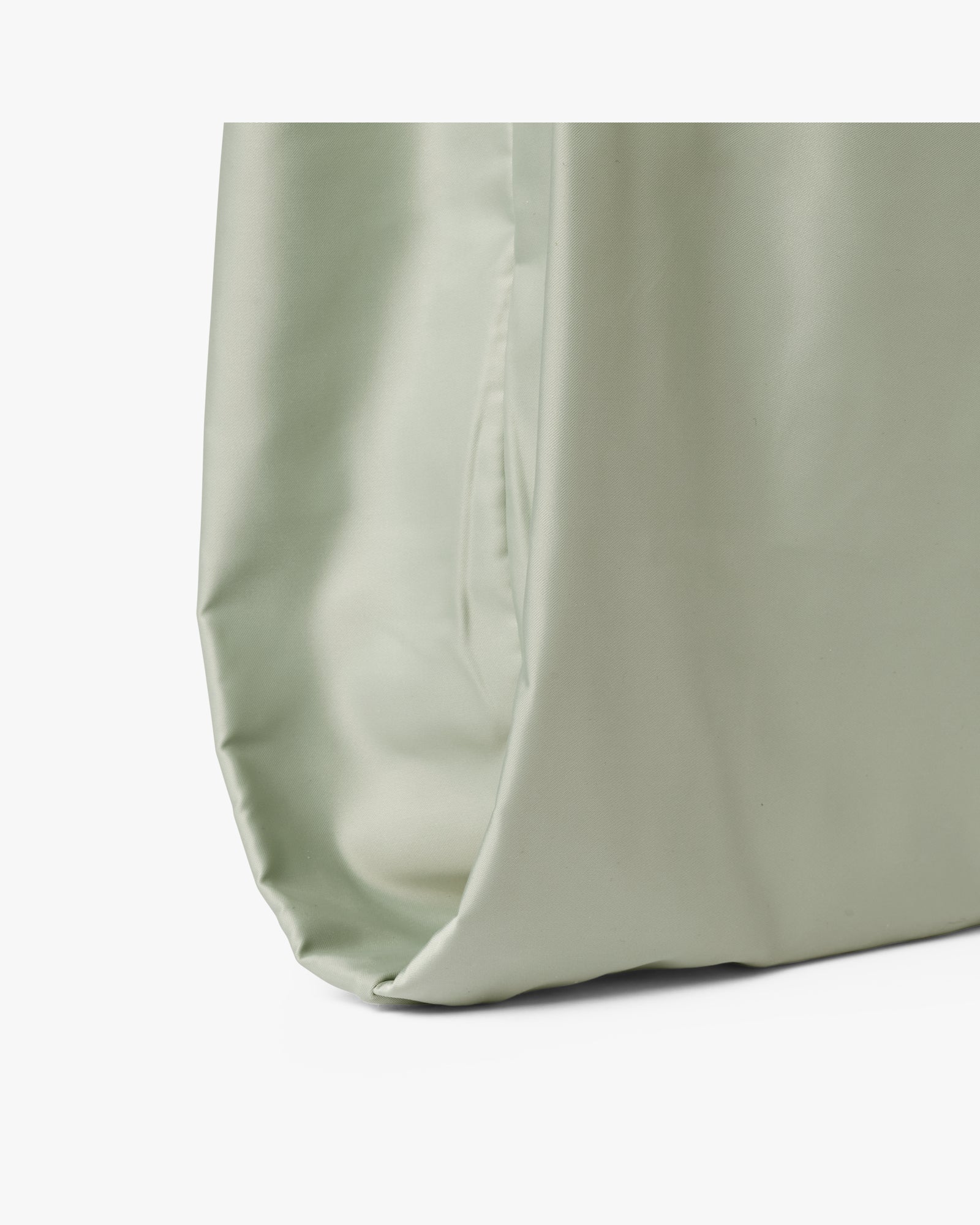 Denne håndvesken kombinerer myk sateng og lett polstring med et lekent design, hvor håndtakene kan brettes over hverandre for et unikt utseende. Den har en skjult magnetisk lukking og et romslig hovedrom med en innvendig glidelåslomme dekorert med paracord-detaljer. Det lette bomullstwill-fôret gjør det enkelt å finne tingene dine. En veske som er både praktisk og dekorativ.