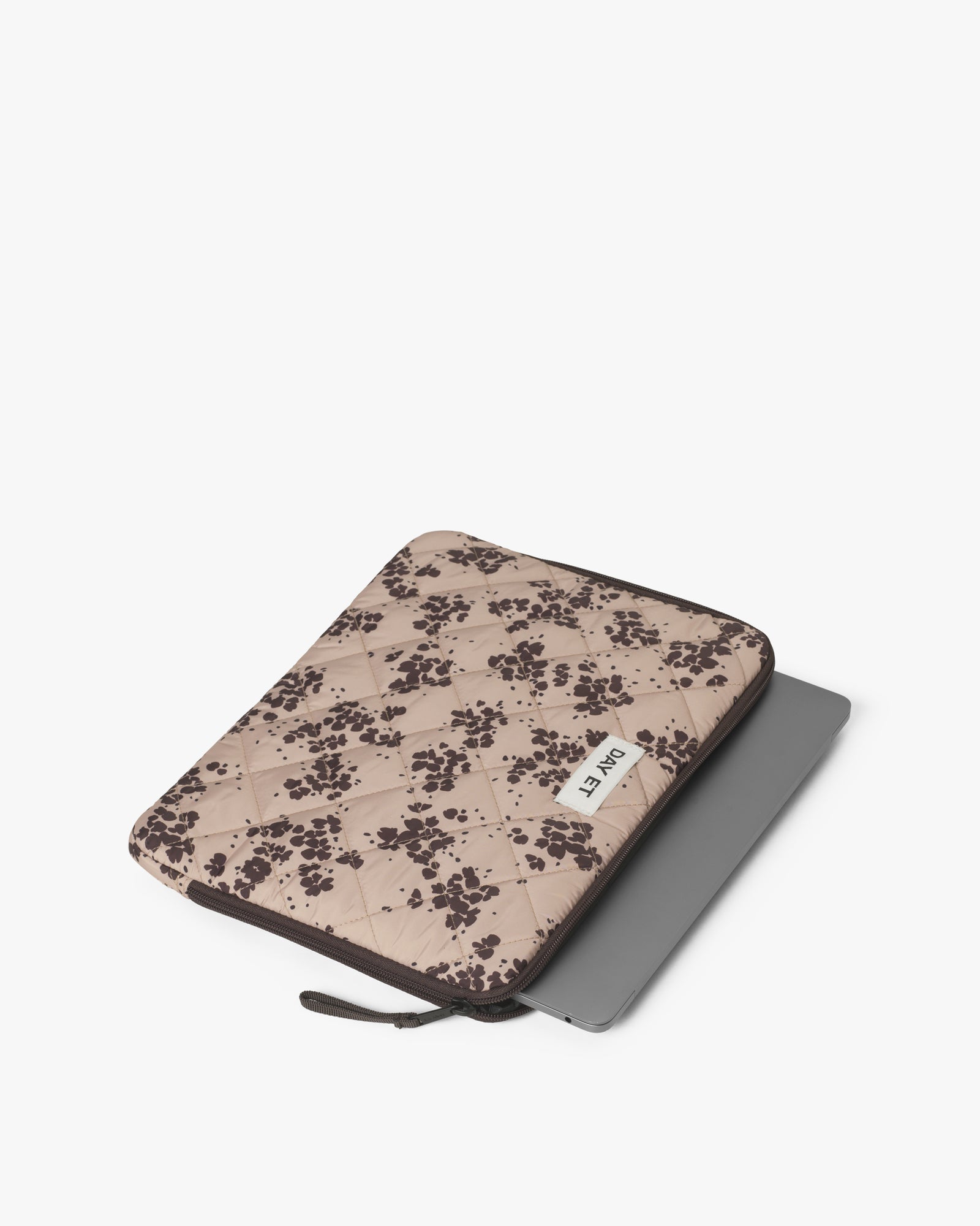 Et polstret laptop-cover for en 13» laptop, designet i vattert materiale med blomstertrykk. En åpen sidelomme på innsiden gir ekstra plass til papirer eller småting. Glidelåsen kan åpnes på vidt gap for rask tilgang til datamaskinen - perfekt for både arbeid og studier.