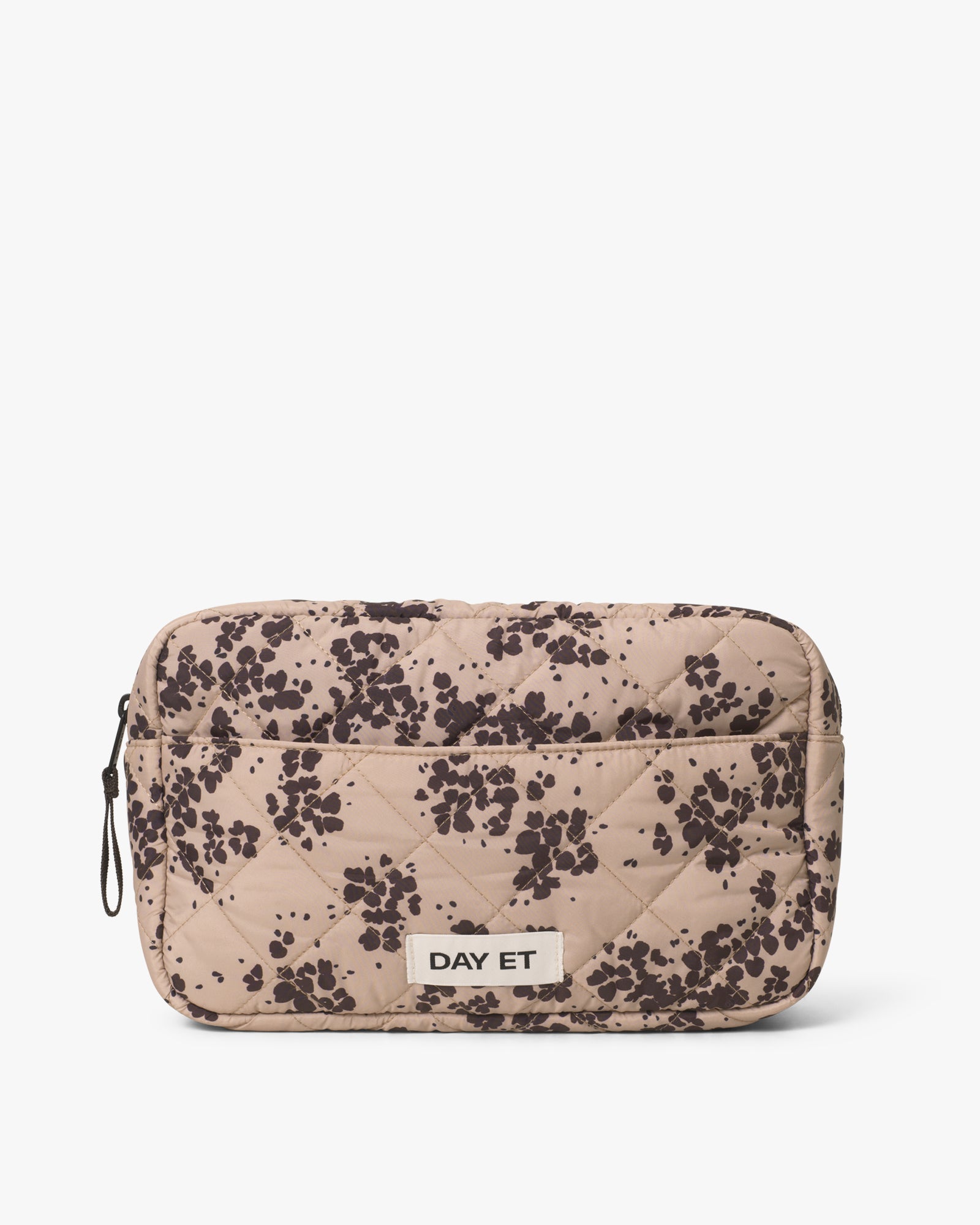 En romslig toalettmappe i vattert design med blomstertrykk. Den har flere innvendige lommer og en utvendig lomme, slik at du enkelt kan organisere toalettsaker. Ytterstoffet og innerforet er laget av 100 % sertifisert resirkulert materiale.
