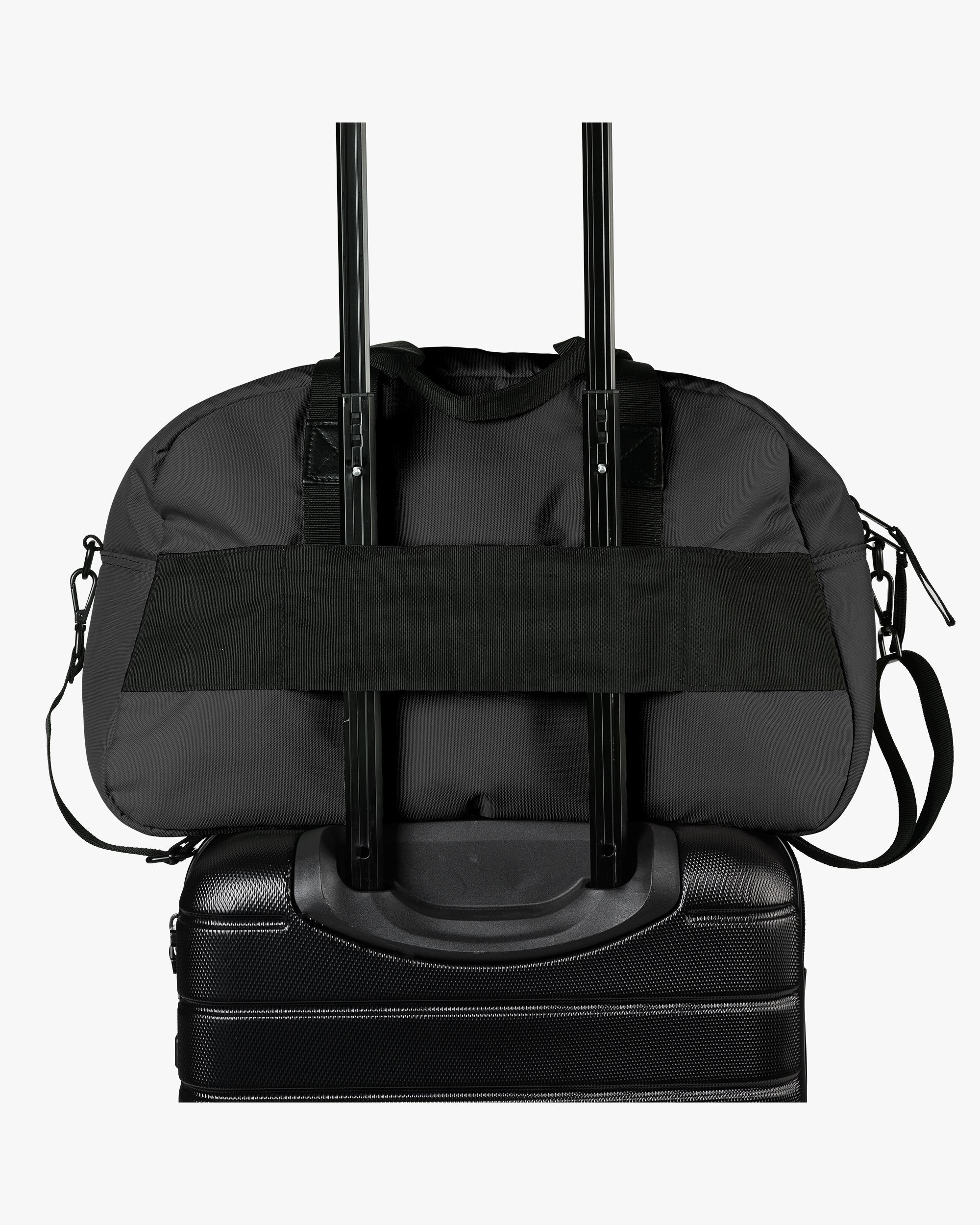 Denne funktionelle taske er perfekt til en getaway. Dens ydre stof og inderfor er lavet af 100% certificeret genanvendt materiale. I hovedrummet er der plads til en 13' computer, og tasken har flere lommer, så du kan organisere dine sager. Tasken har både to kortere håndtag og en aftagelig og justerbar strop, så du kan bære den over skulderen og som crossbody. Den har også en strop bagpå, så tasken kan fastgøres til en kuffert.