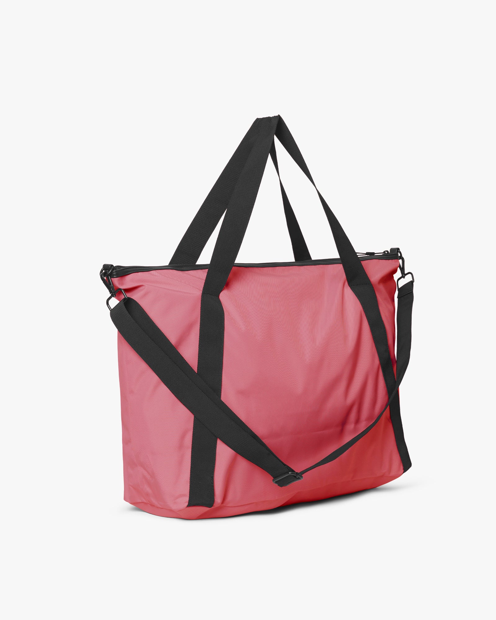 Denne taske har plads til alt hvad du har brug for til en weekend tur, og dens ydre stof og inderfor er lavet af 100% certificeret genanvendt materiale. I hovedrummet er der en indvendig lynlås lomme, hvor du kan opbevare dine mindre sager. Udover de to kortere håndtag har tasken også en aftagelig og justerbar strop, så den både kan bæres over skulderen og som crossbody.