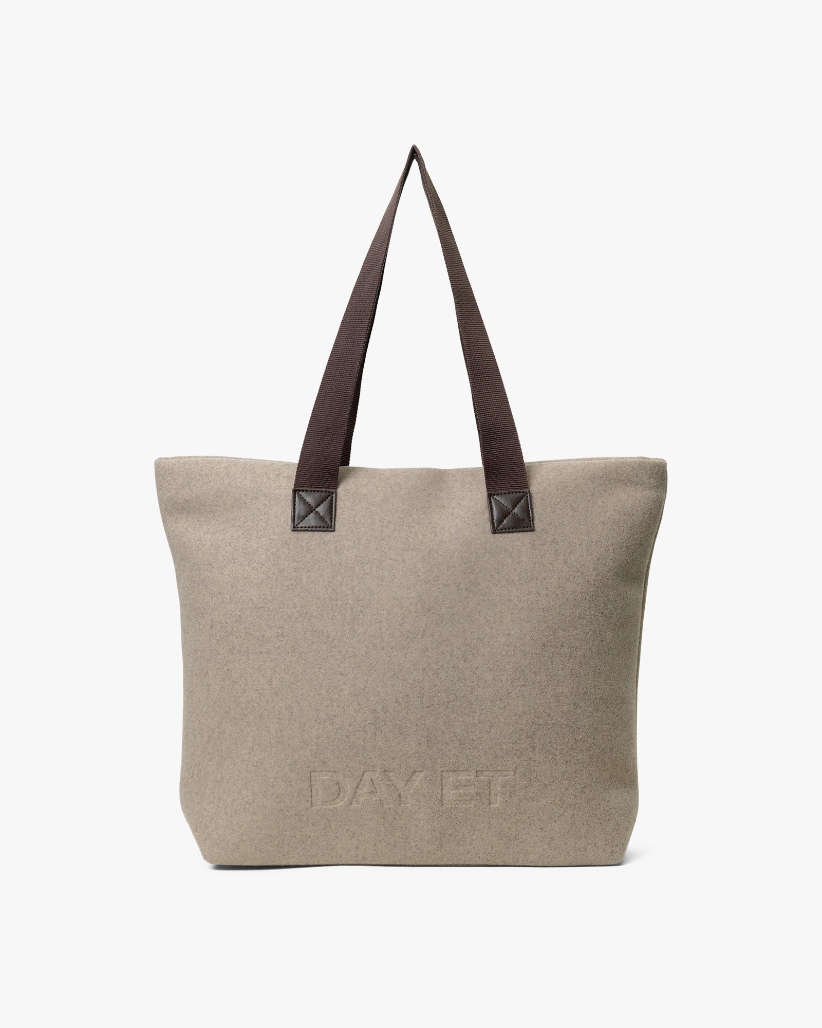 En rummelig shopper i et blødt uldmateriale med sænket lynlåslukning og lange skulderstropper. Indvendigt har den en lynlåslomme til småting, så du nemt kan holde styr på dine ejendele. Et behageligt og praktisk valg til hverdagen med et varmt og enkelt udtryk.