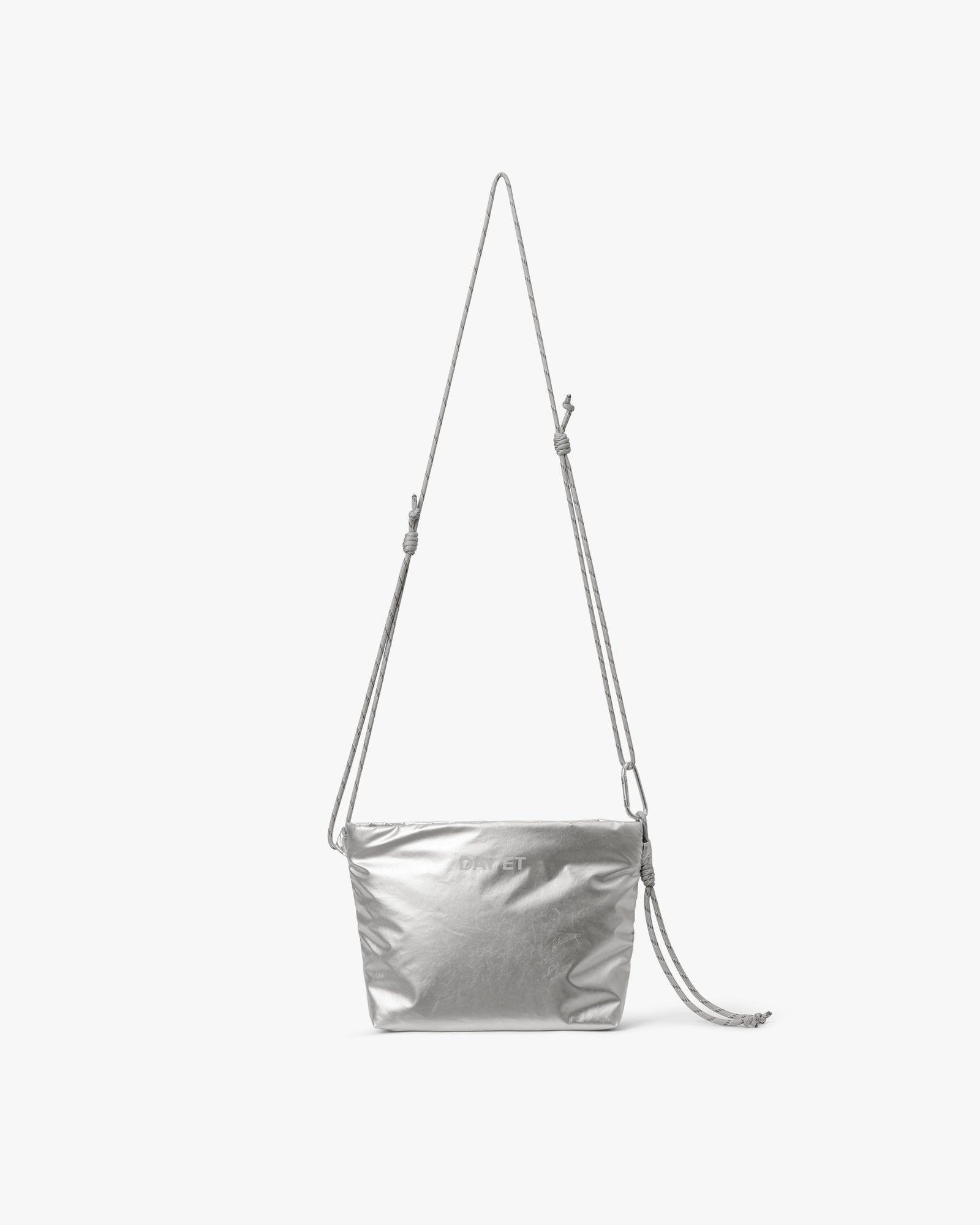 En kompakt crossbody i polstret, skinnende materiale med en praktisk rumdeler i net, der opdeler hovedrummet. Tasken lukkes med en sænket lynlås med snordetalje, og stroppen i paracord er justerbar. Karabinhagen gør det nemt at tage tasken af og på – perfekt til dage, hvor du har brug for hurtig adgang eller vil fastgøre den til en større taske.