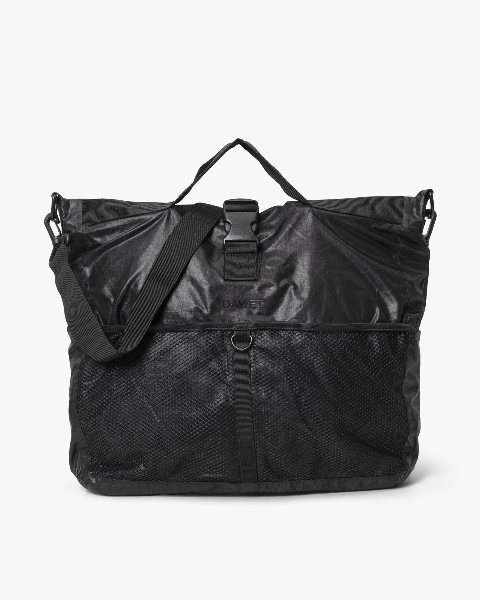 En funktionel tote i vandtæt ripstop-nylon, der kombinerer funktion og fleksibilitet. Yderstof og inderfor er lavet af 100% certificeret genanvendt materiale, og materialet kan modstå vandsøjletryk på op til 15.000 mm. Tasken lukkes med en sænket vandtæt lynlås og et spænde over åbningen, som giver ekstra sikkerhed. Indvendigt finder du en lynlåslomme, og udvendigt har tasken to store mesh-lommer og en funktionel D-krog til ekstraudstyr som karabinhage, AirTag eller andet. Den har både korte hanke og en aftagelig, justerbar rem, så du kan bære den, som du ønsker.