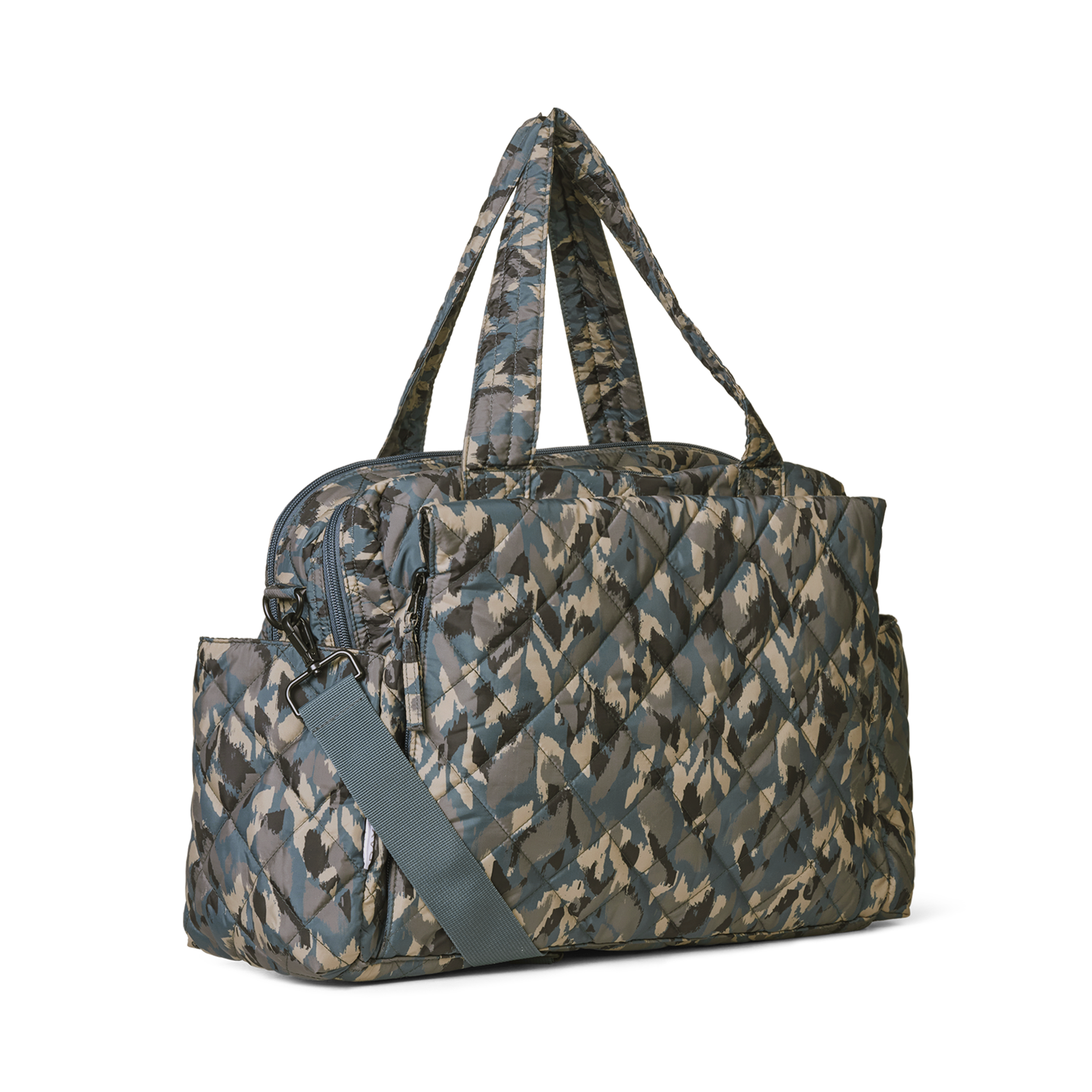 Denne pusletaske er perfekt til dig, der gerne vil have lidt ekstra plads til alle dine sager. Dens ydre stof og inderfor er lavet af 100% genanvendt materiale, og den er designet i et flot print. Tasken har et stilfuldt og praktisk design med to store hovedrum samt indvendige og udvendige lommer, så der er plads til alt hvad du har brug for. Tasken har en indbygget puslemåtte, så du kan pusle dit barn, når du er på farten. Den har også en justerbar og aftagelig strop, som kan tilpasses, så den passer præcis til dig eller til at hænge på barnevognen. Den vil hurtigt blive uundværlig!