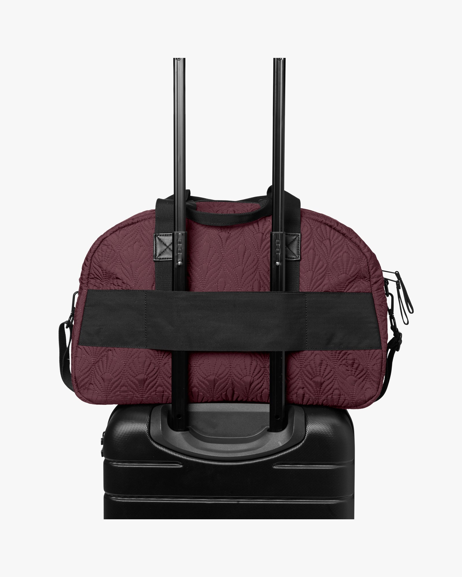 Denne funktionelle taske i et flot quiltet mønster er perfekt til en getaway. I hovedrummet er der plads til en 13" computer, og tasken har flere lommer, så du kan organisere dine sager. Tasken har både to kortere håndtag og en aftagelig, justerbar strop, så du kan bære den over skulderen og som crossbody. Den har også en strop bagpå, så den kan bruges som rejsetaske og nemt kan fastgøres til en kuffert. Taskens ydre stof og inderfor er lavet af 100% certificeret genanvendt materiale.
