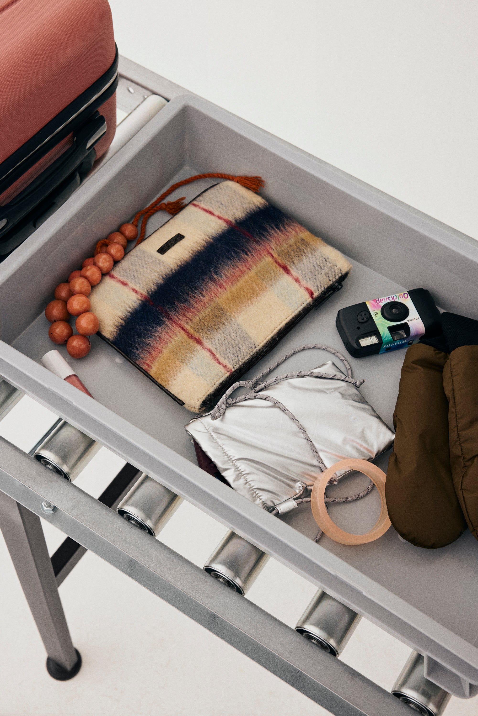En alsidig pouch i blødt uldent materiale med et unikt ternet mønster, der både kan bruges som clutch eller crossbody. Den har en sænket lynlåslukning og en åben inderlomme, og den justerbare, aftagelige strop gør det nemt at tilpasse den til dit behov. Et funktionelt og stilrent valg til både hverdagsbrug og ud-af-døren øjeblikke.