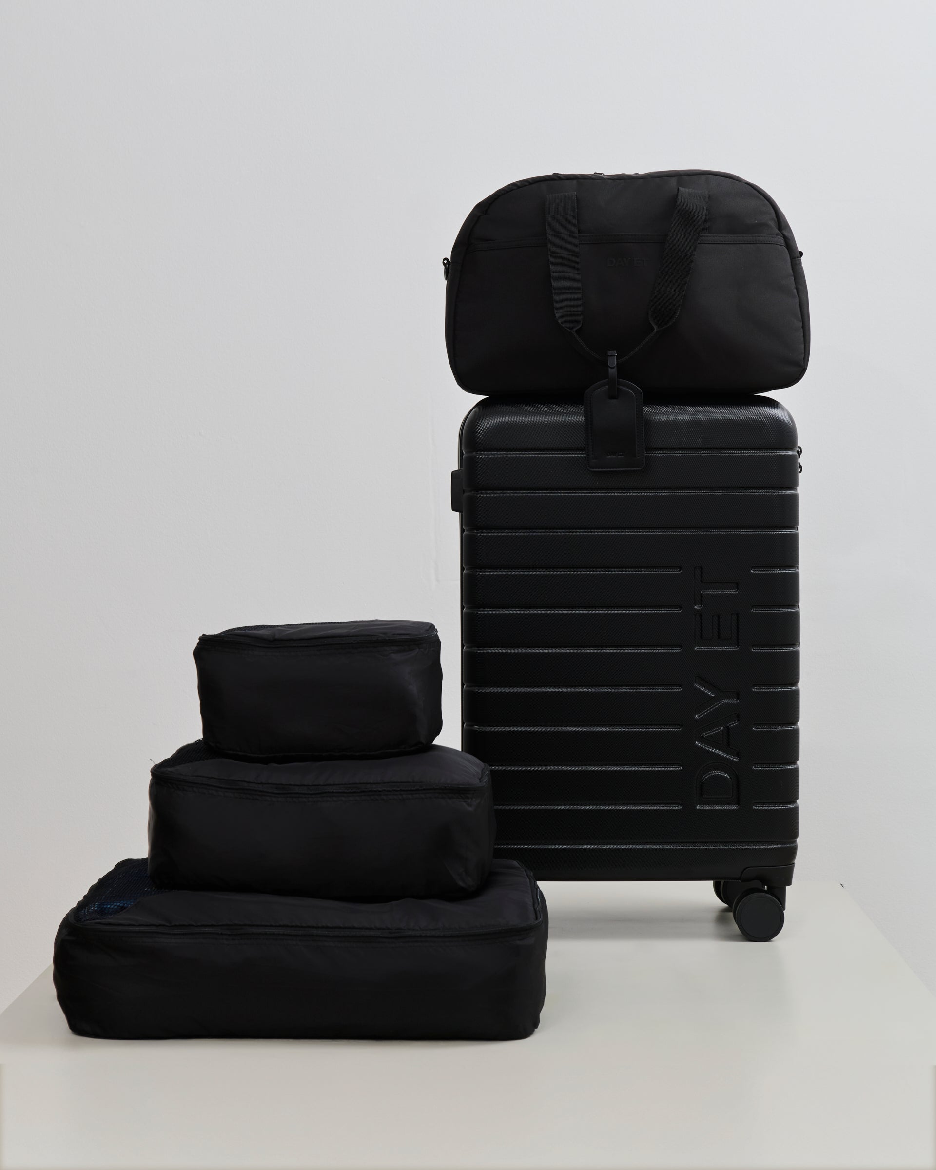 Sættet indeholder alt, hvad du skal bruge til din rejse: 1x 24" Tonal Suitcase, 1x Gweneth Tonal 1Nighter, 1x Suitcase Packing Set, 1x Luggage Tag.
