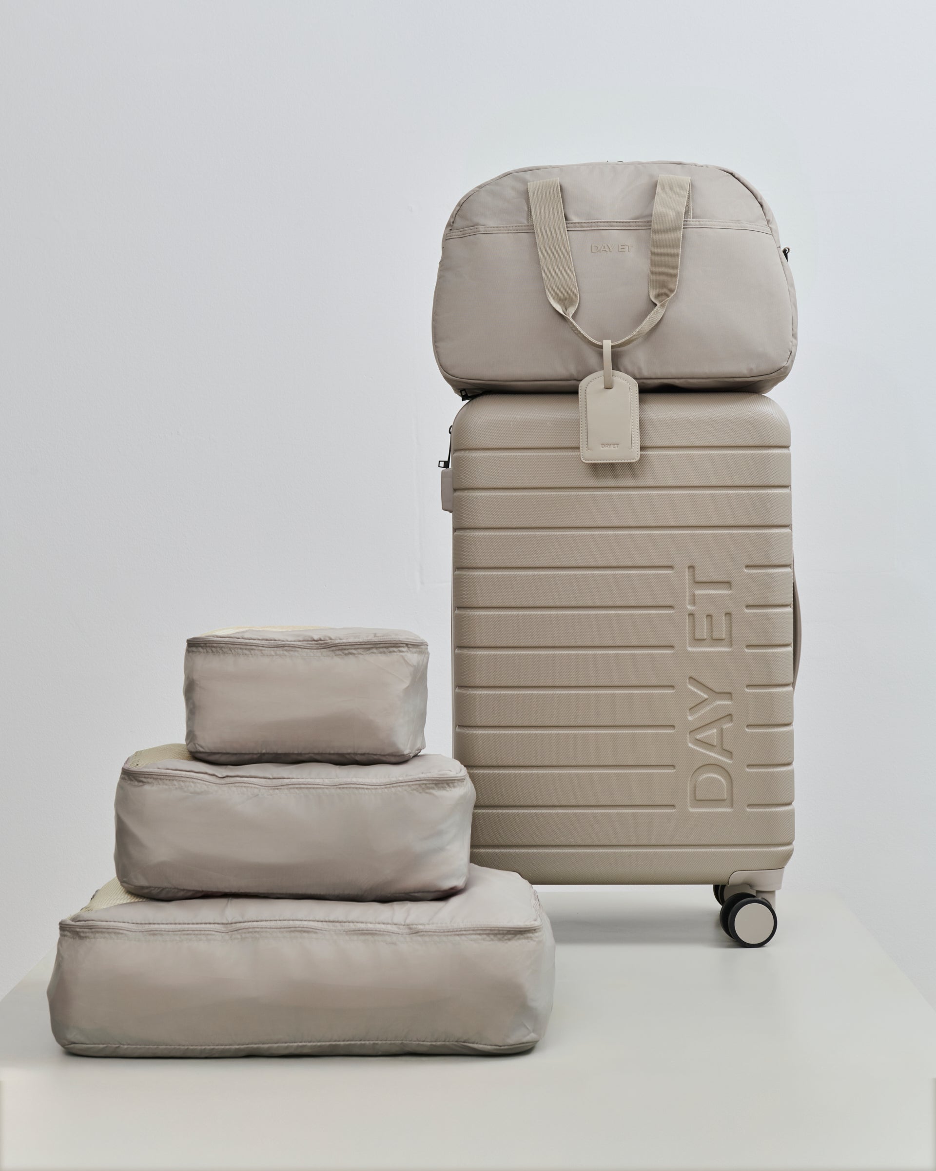 Settet inneholder alt du trenger til reisen: 1x 24" Tonal Koffert, 1x Large Tonal Nylon 1Nighter Reiseveske, 1x Suitcase Packing Cube Set og 1x Bagasjelapp.